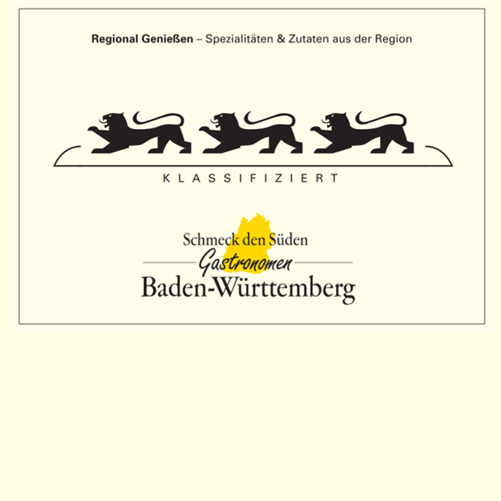 Diese Weinkompetenz stellen wir mit der Auszeichnung „Haus der Baden-Württemberger Weine“ unter Beweis.Geprüft und zertifiziert werden wir vom Badischen und Württembergischen Weinbauverband sowie vom DEHOGA Baden-Württemberg nach dessen strengen Qualitätsstandards.